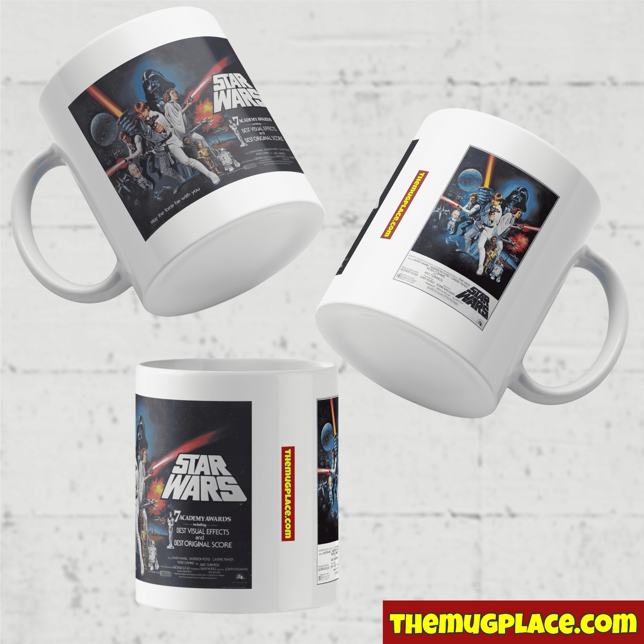 Spin the mug around, and you see the proof of the pudding. This version includes the bold text: “7 Academy Awards including Best Visual Effects and Best Original Score.” This wasn’t just advertising; it was a flex. This version hit theaters after the film had already smashed box office records and scooped up Oscars. It’s the poster that says, “We came, we saw, we blew up the Death Star.”