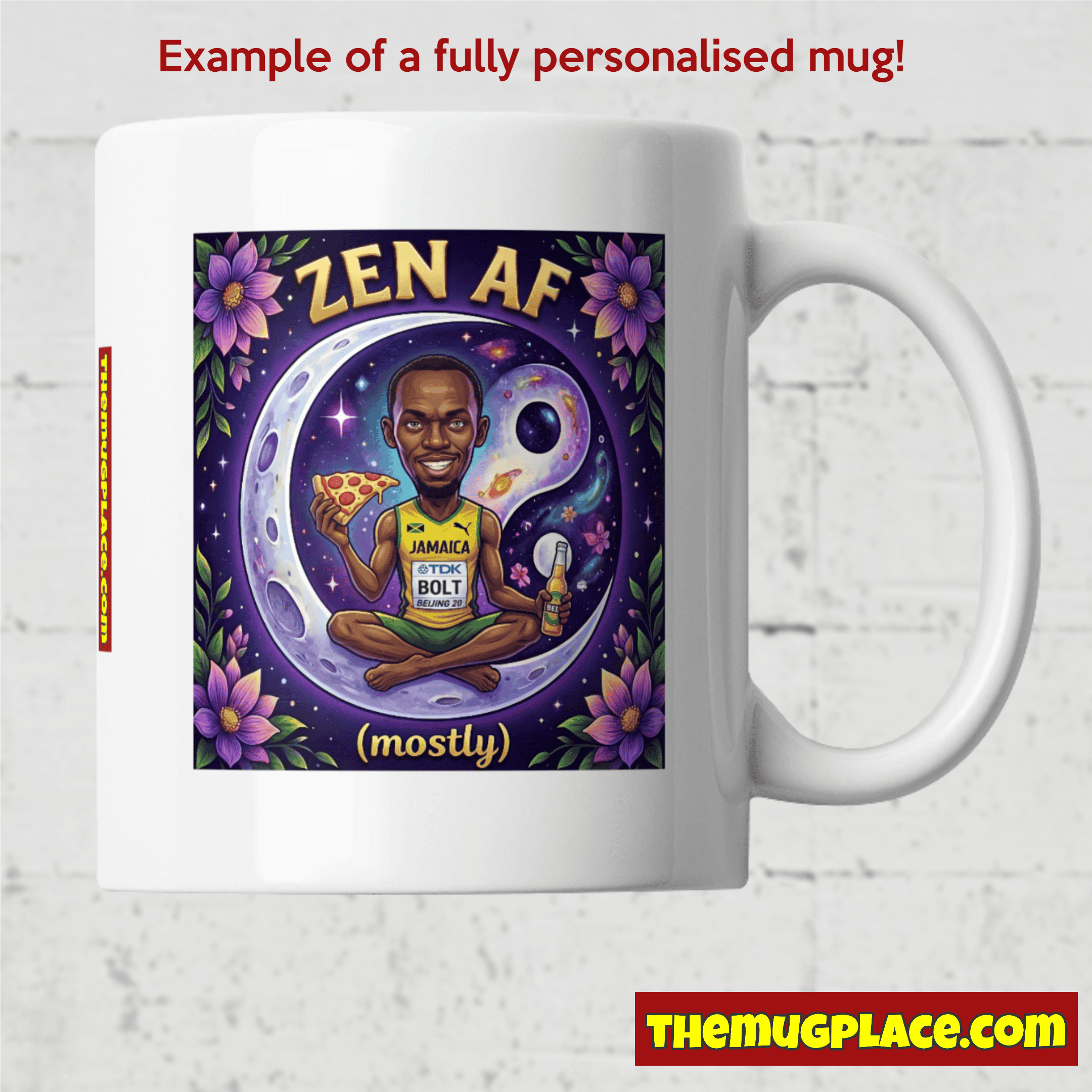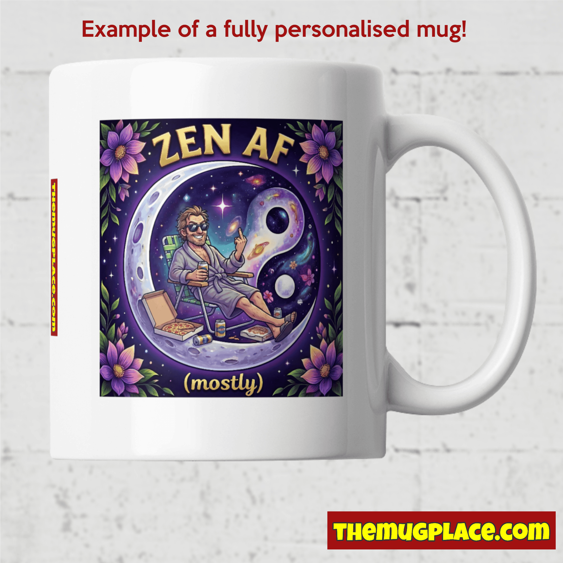 But wait—it gets better. If none of these celestial characters quite capture your essence, or if you’re dreaming of seeing your own spirit animal (or spirit alien, spirit inanimate object, we don’t judge) in the cosmic yin-yang embrace, The Mug Place will design a custom unique mug just for you. That’s right: unlimited personalisation possibilities. Your dog? Your cat? Your weird pet lizard? Your best friend’s ridiculous energy? The weird version of yourself you only show at 3 AM? We’ll put it there, surrounded by stars and sass, with the same irreverent vibes. This isn’t just customisation—it’s creating a mug that’s as unique as you or your loved ones are. If you want us to design your own spirit animal or transform your friend, wife, husband or boss into an awesome mug, order it from HERE. (*Note on full personalisation: Be ZEN – for real! For full personalisations, add to our standard delivery time 2 or 3 days to allow our designers to craft the perfect cosmic mug for you*)